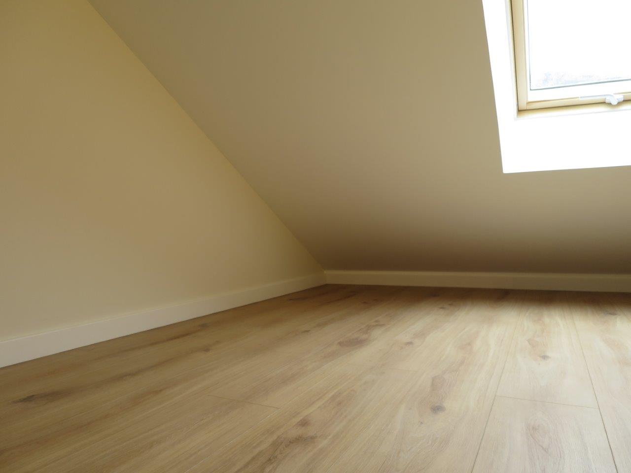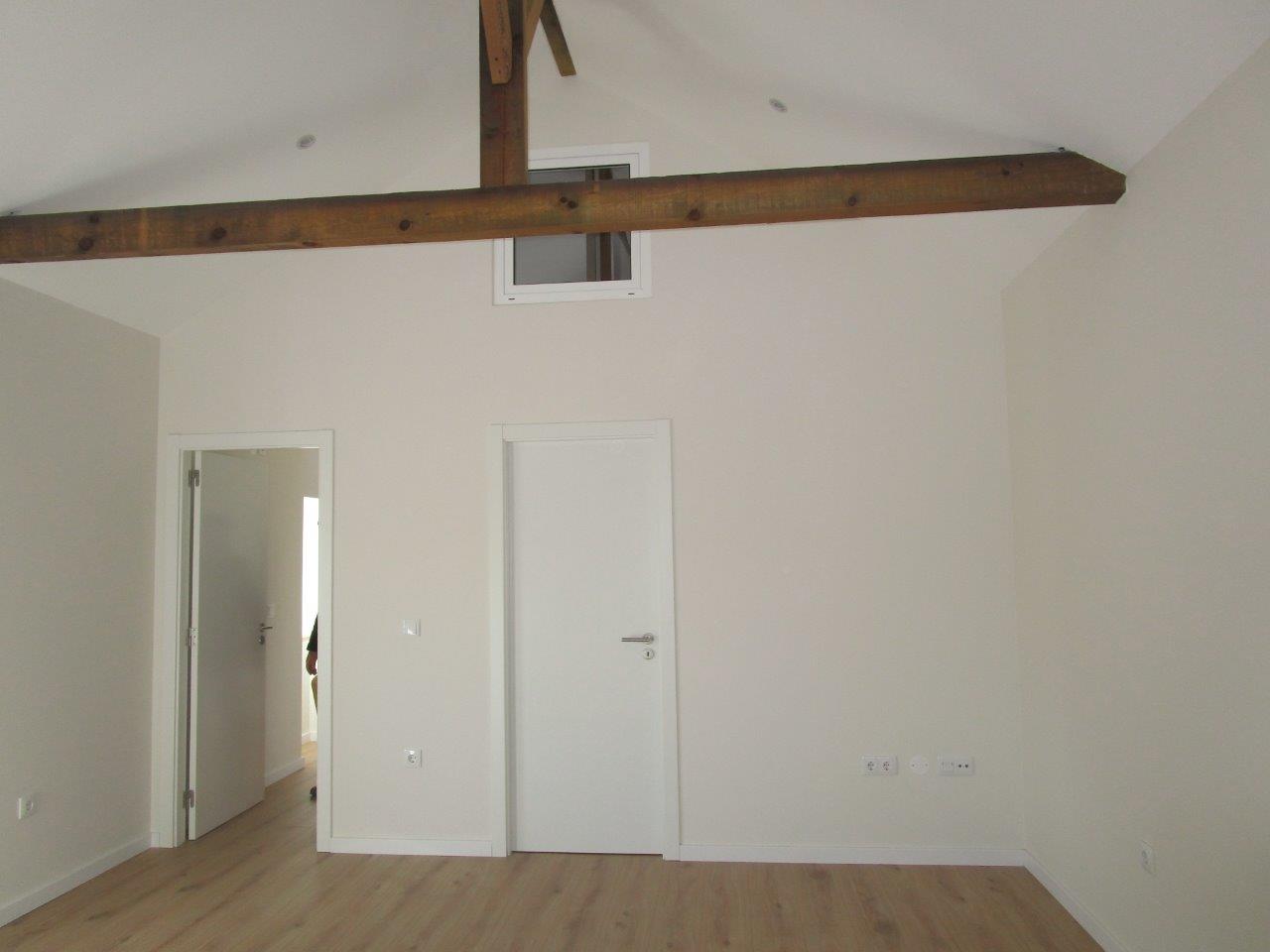 A casa tem pavimento laminado nos quartos, sala de estar e sótão, e pavimento cerâmico na casa de banho.