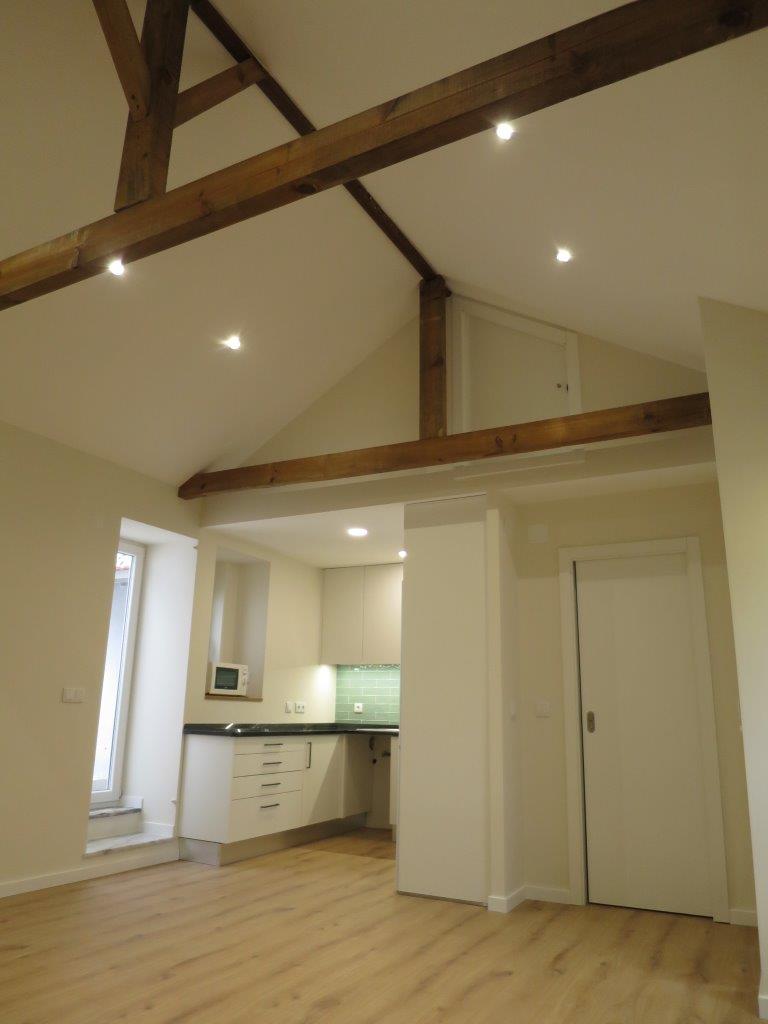 Casa Completamente Remodelada, com 2 quartos com roupeiros embutidos, casa de banho com chuveiro, sala de estar e cozinha em open space.