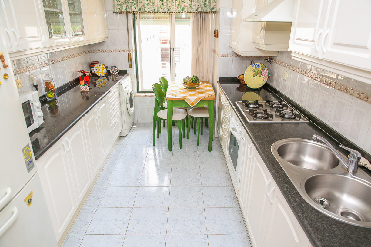 - Cozinha com 10,30 m², totalmente equipada (eletrodomésticos Bosch) e móveis lacados a branco