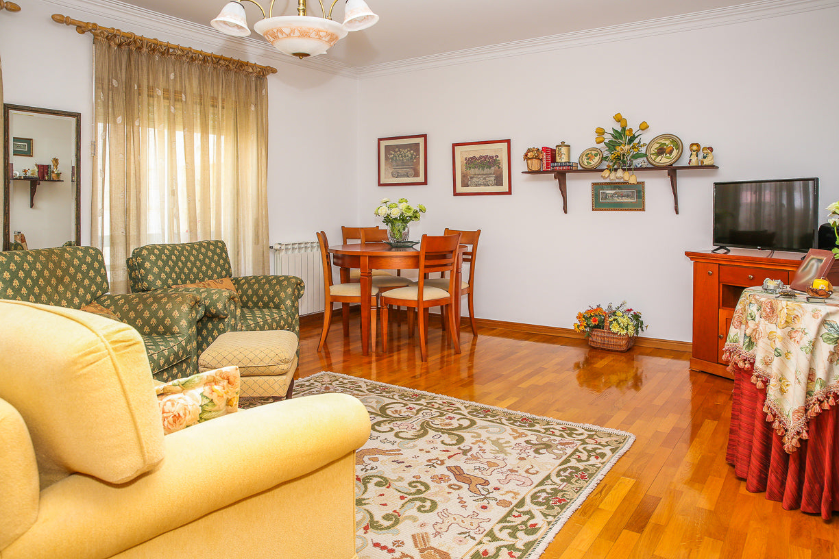 Tem 104 m², está em excelente estado, com áreas muito generosas e muita luz natural.