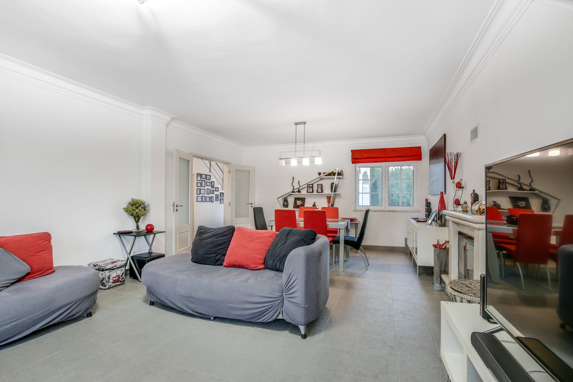· Sala de estar com lareira e sistema de recuperação de calor, ar condicionado inverter (18000BTU) com acesso ao terraço (22m²) – 33m²